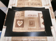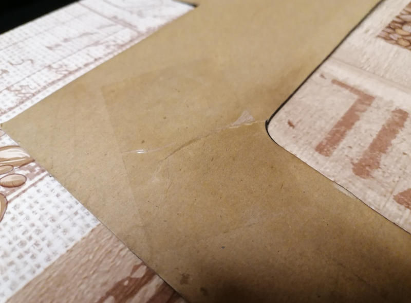Schließlich hab ich den komplett defekten und zerknitterten Teil aus der Schablone ausgeschnitten und mit Karton geflickt.