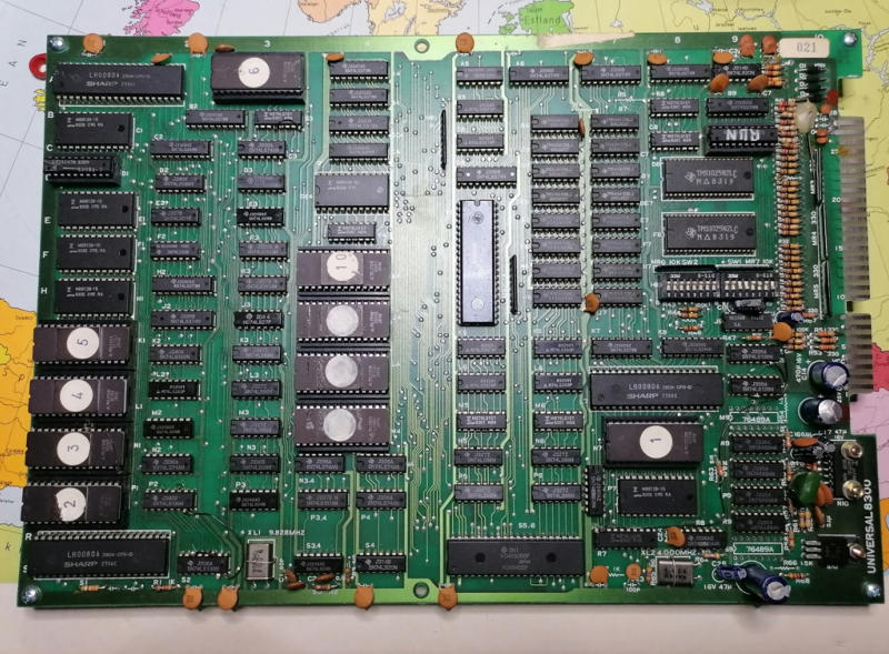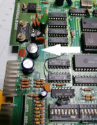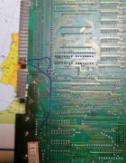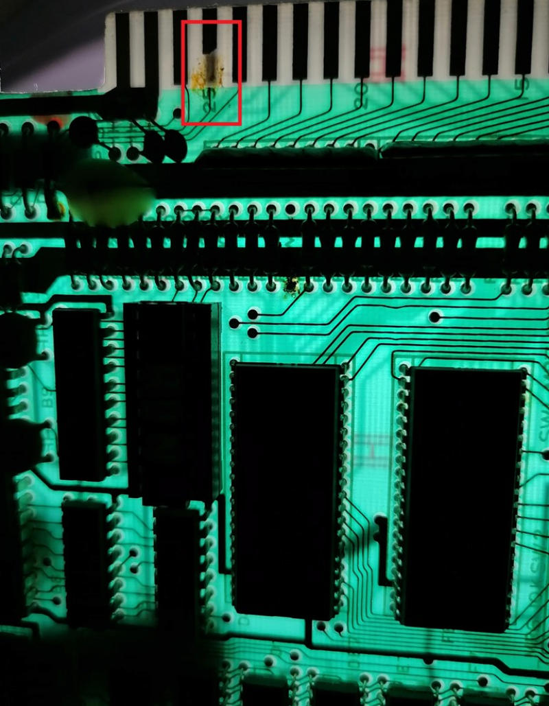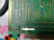 Die Platine lief nun soweit, allerdings hatte sie noch keinen Ton, da die Leiterbahnen beschädigt waren. Auch die Leiterbahn für den coin switch counter.