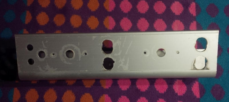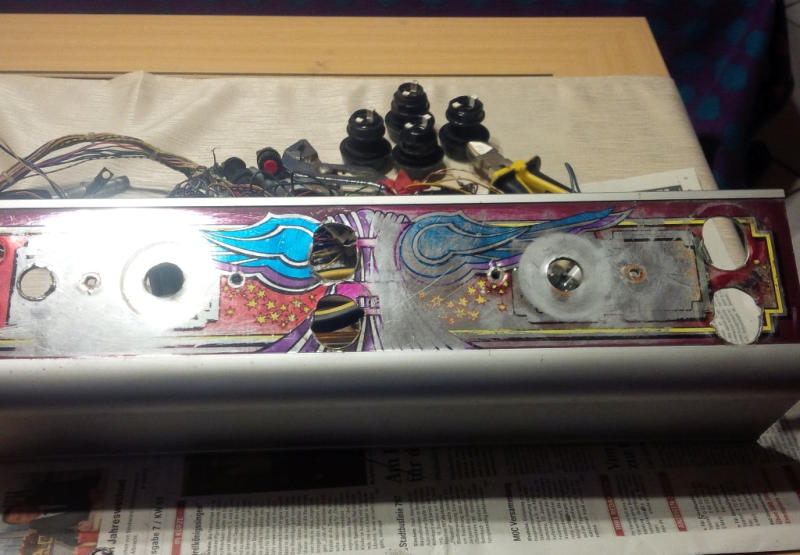 Nun kam zu Tage, dass die Ausfrässungen für die Knöpfe leider sehr Laienhaft gemacht wurden. Da ich kleine Knöpfe verbauen möchte musste ich schauen wie ich das am besten löse. Eventuell könnte man ein Overlay aus Stahlblech oder Plexi darüber machen. Dann wären die Löcher zu.