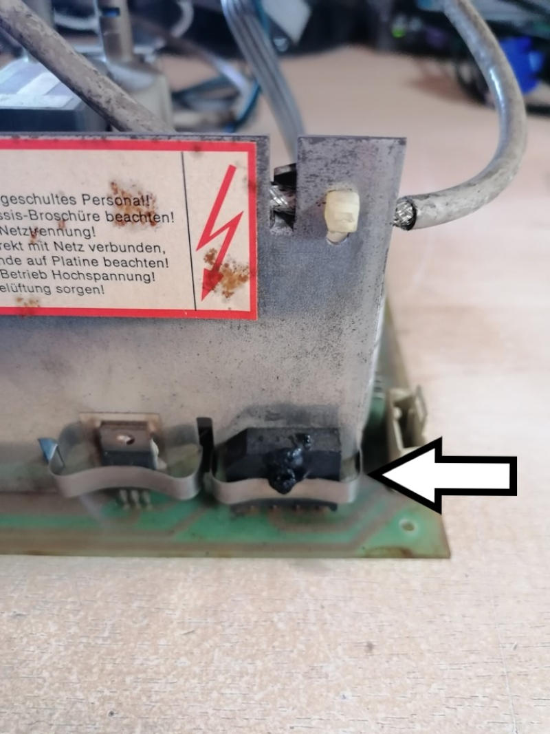 Vor dem Ausbau unbedingt den Netzstecker ziehen und die Bildröhre / Chassis entladen, da diese auch