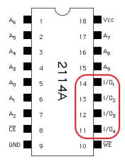 Dann Datasheet des SRAM 2114 aus dem Netz angeschaut und die PINs 11 - 14 durchgemessen.