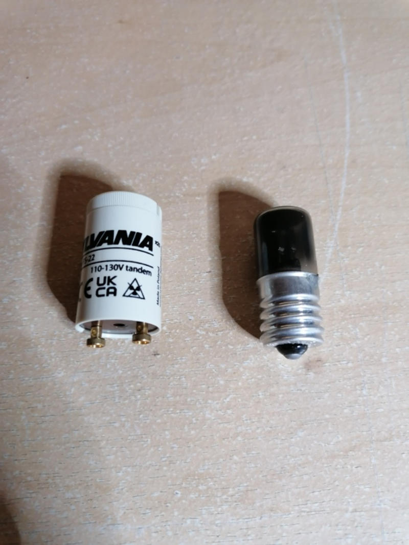 Am Ende war aber nur der Starter defekt. Leider ein Exot mit Gewinde (Im Bild mal den Vergleich). Nach dem Austausch funktionierte die Beleuchtung wieder.