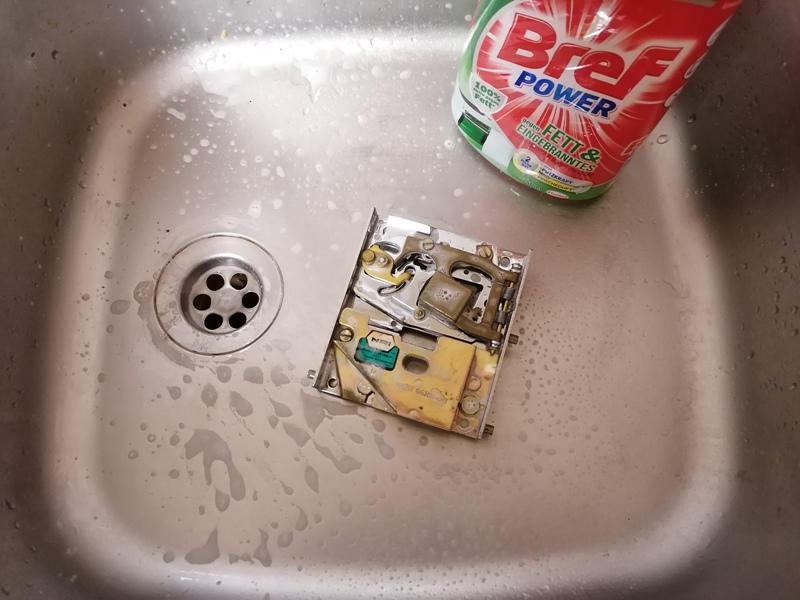 Dieser musste aber erst mal einen Waschgang über sich ergehen lassen. Danach wurde der amerikanische Währungsaufkleber entfernt, und schau an, darunter