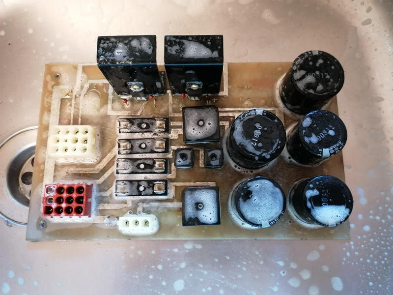 Bevor ich das Original Netzteil einbaute, wurde es erst gewaschen und in Ordnung gebracht. Das angeschmorte Kabel auf der Rükseite wurde ersetzt.
