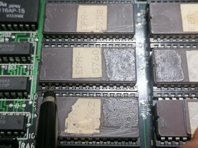 Auf dem Tisch liegt meine Original Sega Mister Viking PCB mit Grafikfehlern.Drückt man die Eproms nach oder biegt die Platine wird die Grafik für ein paar Minuten / Stunden richtig angezeigt ehe der Fehler wieder auftaucht.Für mich sieht das zunächst mal nach einem defekten Eprom Sockel aus. Evtl auch Verunreinigungen oder Leiterbahn.