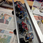 Nun kam zu Tage, dass die Ausfrässungen für die Knöpfe leider sehr Laienhaft gemacht wurden. Da ich kleine Knöpfe verbauen möchte musste ich schauen wie ich das am besten löse. Eventuell könnte man ein Overlay aus Stahlblech oder Plexi darüber machen. Dann wären die Löcher zu.
