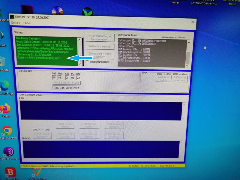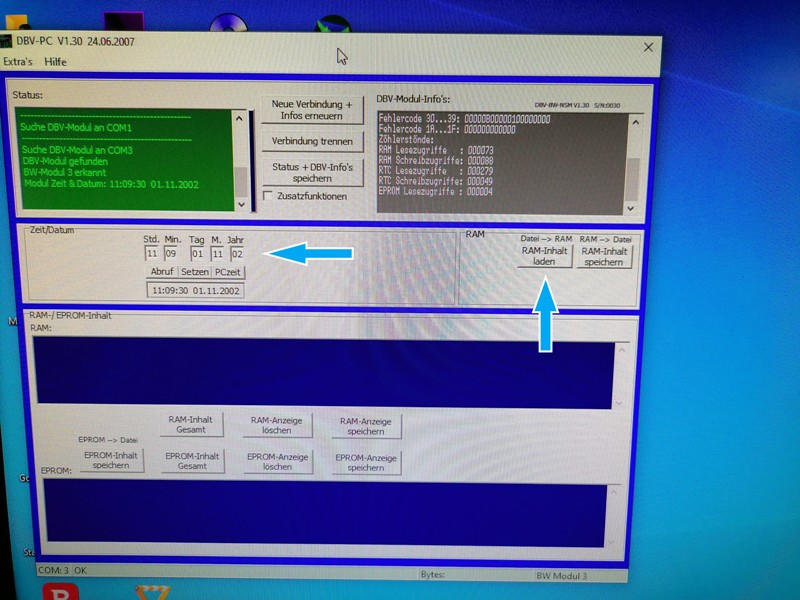 Ist der DBV angeschlossen setzen wir zuerst das Datum. Dies muss sich innerhalb der Laufzeit befinden, da das Gerät sonst in den Hobbymodus geht.