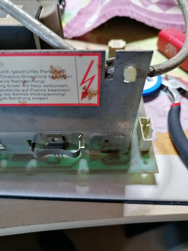Vor dem Ausbau unbedingt den Netzstecker ziehen und die Bildröhre / Chassis entladen, da diese auch